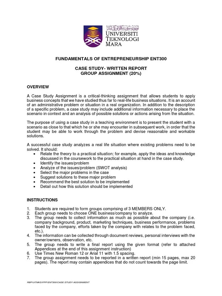 Ent300 Individual Assignment Case Study : Ent300 Individual Assignment. Alia najiha binti khairon zamani 2011919264 iffah diyanah binti jantan 2011678976 nurimani binti yusoff 2011482988 nur syafiqah binti shaiful haslan 2011299564 mohd ashraf bin rusli 2011680262 class : As 114 5a1 this assignment is submitted as a partial fulfilment … "do you know a future gamecock thinking about #goinggarnet? By this, the reader will get acquaintance about the background of the study. Biography of tan sri syed mokhtar al; Individual assignment case 1 and 2;